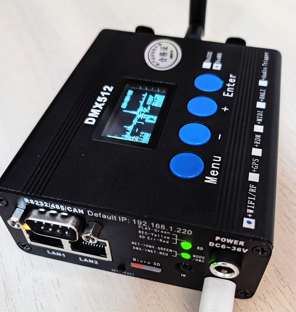 • ArtNet+SD卡灯光音频同步录播中控UDP/485/232指令播控DMX灯控台